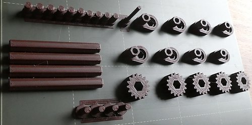 At various stages during the assembly you are asked to run the partially completed walker mechanism until it is smooth: This is very important. The 3D printing process sometimes leaves whiskers or small blobs of plastic which might jam the fully assembled power train unless each stage is run-in until all parts are worn smooth when the whole will operate as designed.